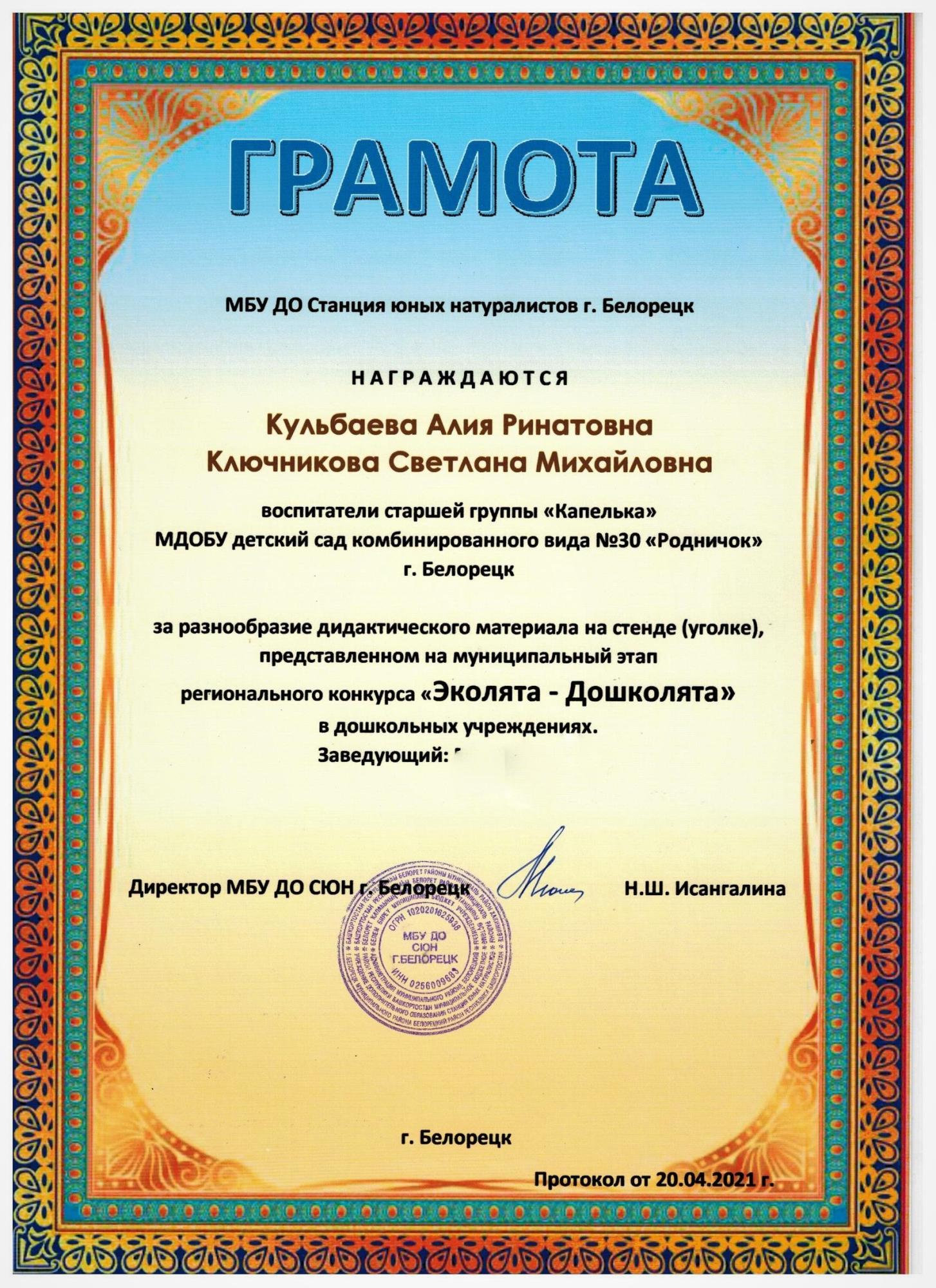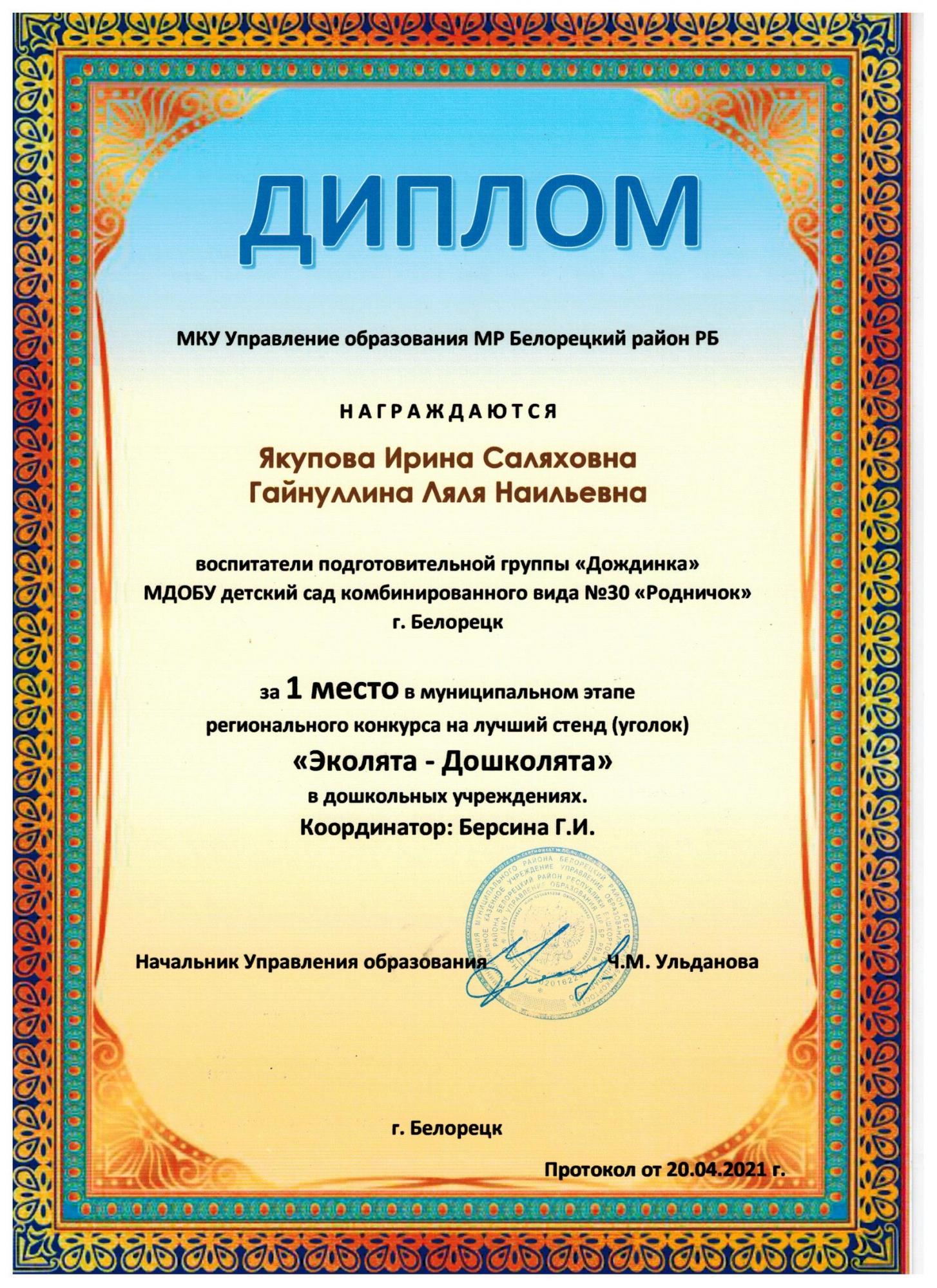 Дипломы участников и победителей муниципальных и региональных конкурсов